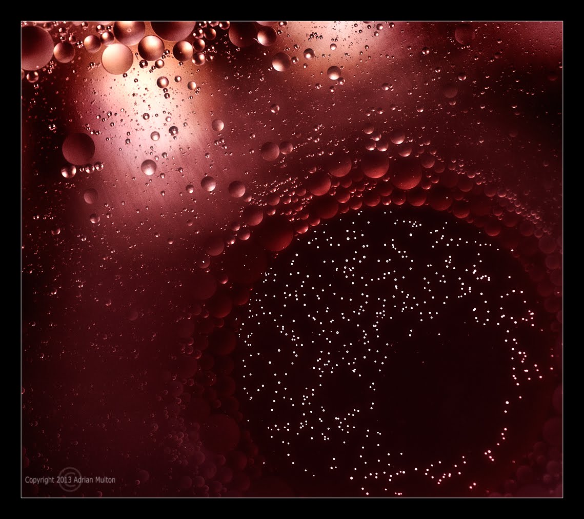 If the oil coagulates into a single large bubble, give it a stir with a reed or coffee stirrer and wait a few seconds for it to stop spinning so quickly.